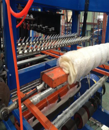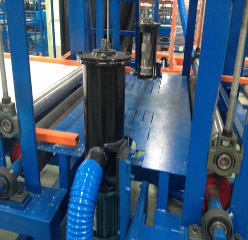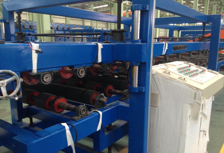 4.主機采用外包橡膠輥臥式復(fù)合,保護了彩鋼板漆面保護及夾芯板的加壓復(fù)合;